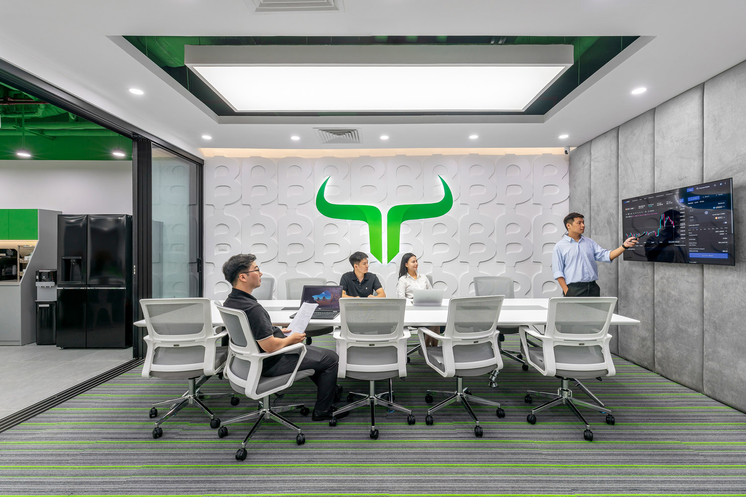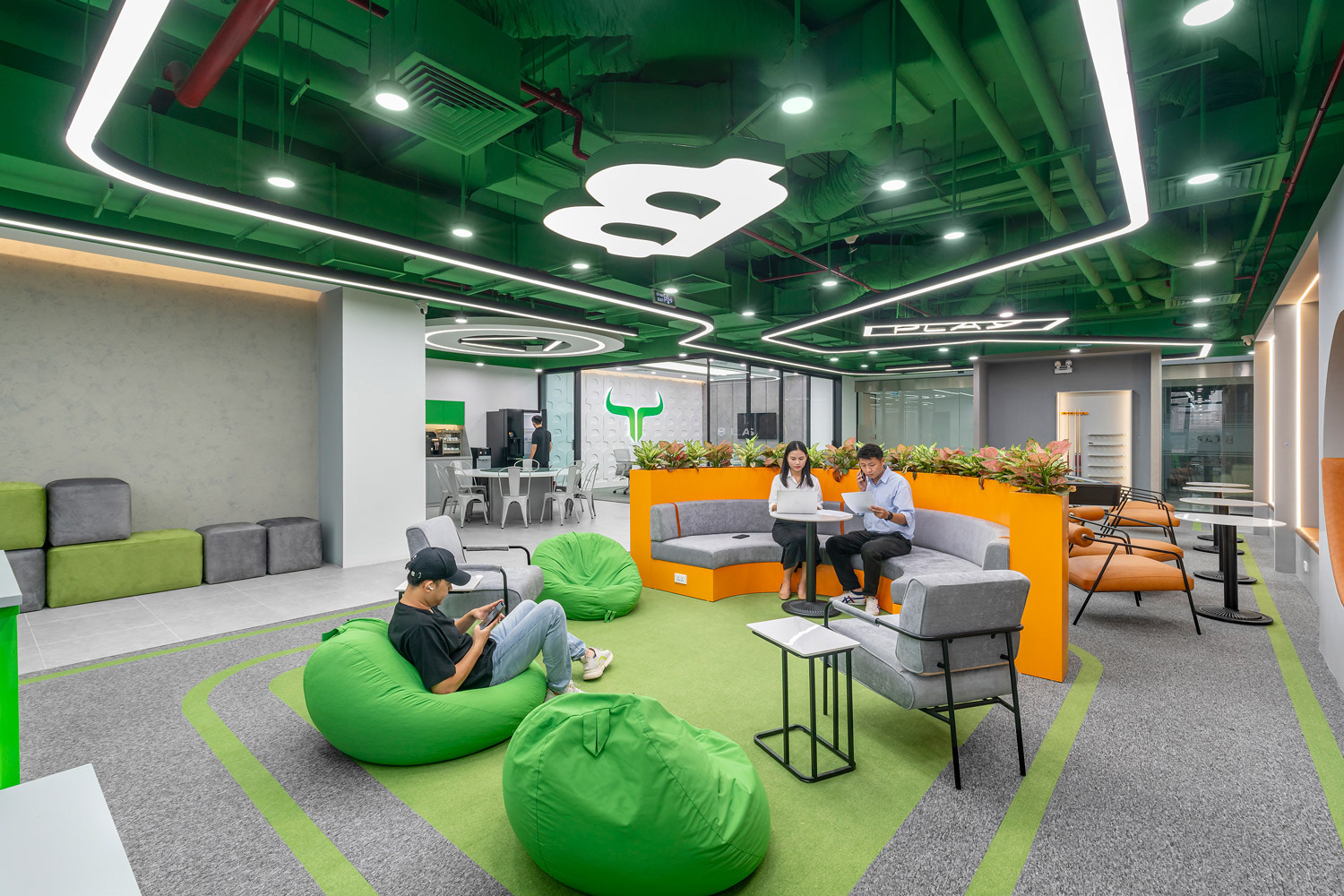 - Yêu cầu: Kiến tạo không gian văn phòng sáng tạo, hiện đại, thể hiện rõ nhận diện thương hiệu mạnh mẽ (màu Xanh lá, Bò tót).