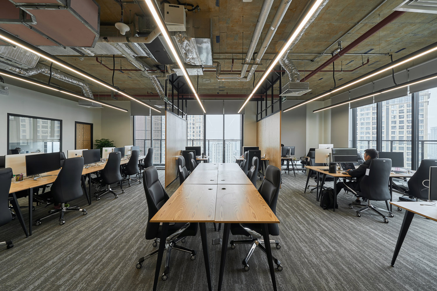 - Thách thức: Cần thiết kế và thi công hệ thống trần và ánh sáng phức tạp để vừa đảm bảo tính thẩm mỹ, vừa cung cấp đủ ánh sáng cho không gian rộng, đồng thời giảm thiểu tiếng ồn trong phòng họp.